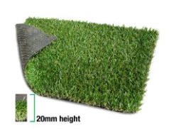 Synscape Eco - 20mm R236 p/m2. A combination of 20mm straight monofilament yarn and a 20mm curled yarn; with a latex and fibre glass reinforced backing Four tone colour: Fresh green, dark green, yellow and brown Used for gardens; displays; patios; playschools and multifunctional. 2m and 4m roll width