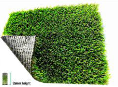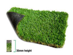 Synscape Luxury - 35mm R 317.00 p/m2. A combination of 35mm straight monofilament yarn and a 35mm curled yarn; with a latex and fibre glass reinforced backing Four tone colour: Fresh green, dark green, yellow and brown Used for gardens; displays; patios; playschools and multifunctional. 2m and 4m roll width