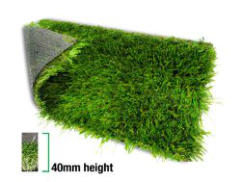 SYN 40 R 266 p/m2. 40mm Pile height, Top End Tencate Yarn with a double backing system ensuring a Top End durable product used for sport, play areas and landscape applications where extra softness and durability is key. The Turf requires 10mm Silica Sand and a 10mm Rubber Infill layer which adds softness to the Turf System. This is one of our most popular choices for landscape and mini sports for home use.